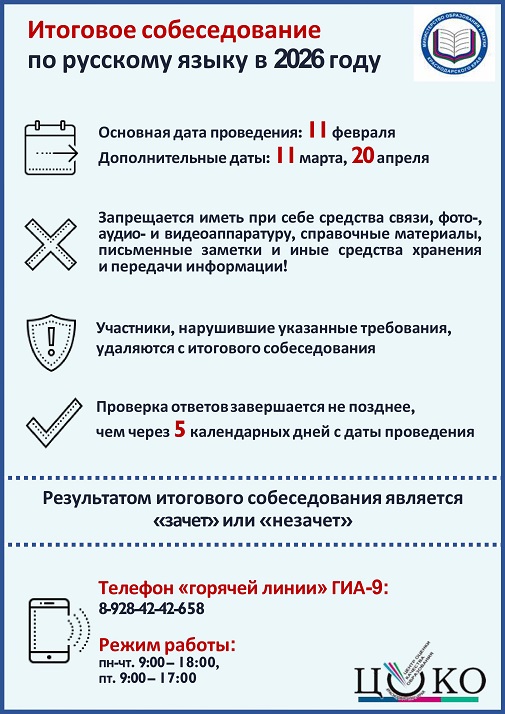 Схема проведения итогового собеседования по русскому языку в 9 классе в 2025-2026 учебном году