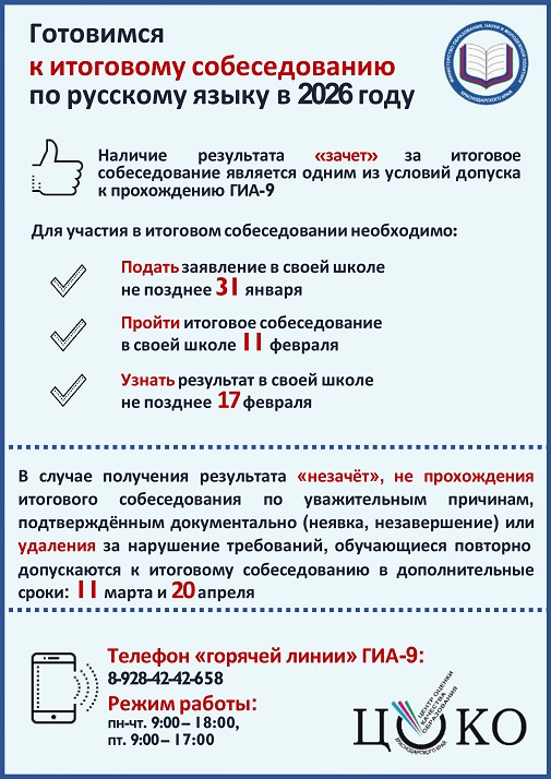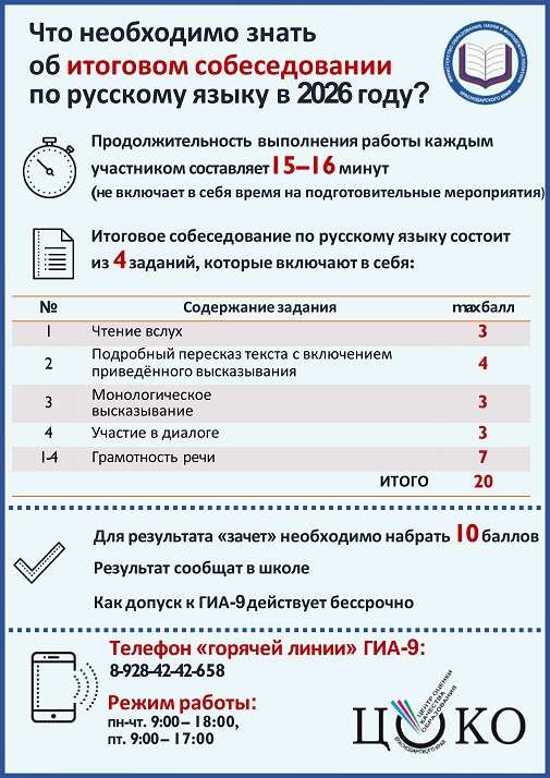 Зачёт за собеседование является обязательным условием допуска к государственной итоговой аттестации по образовательным программам основного общего образования (ОГЭ и ГВЭ-9).
